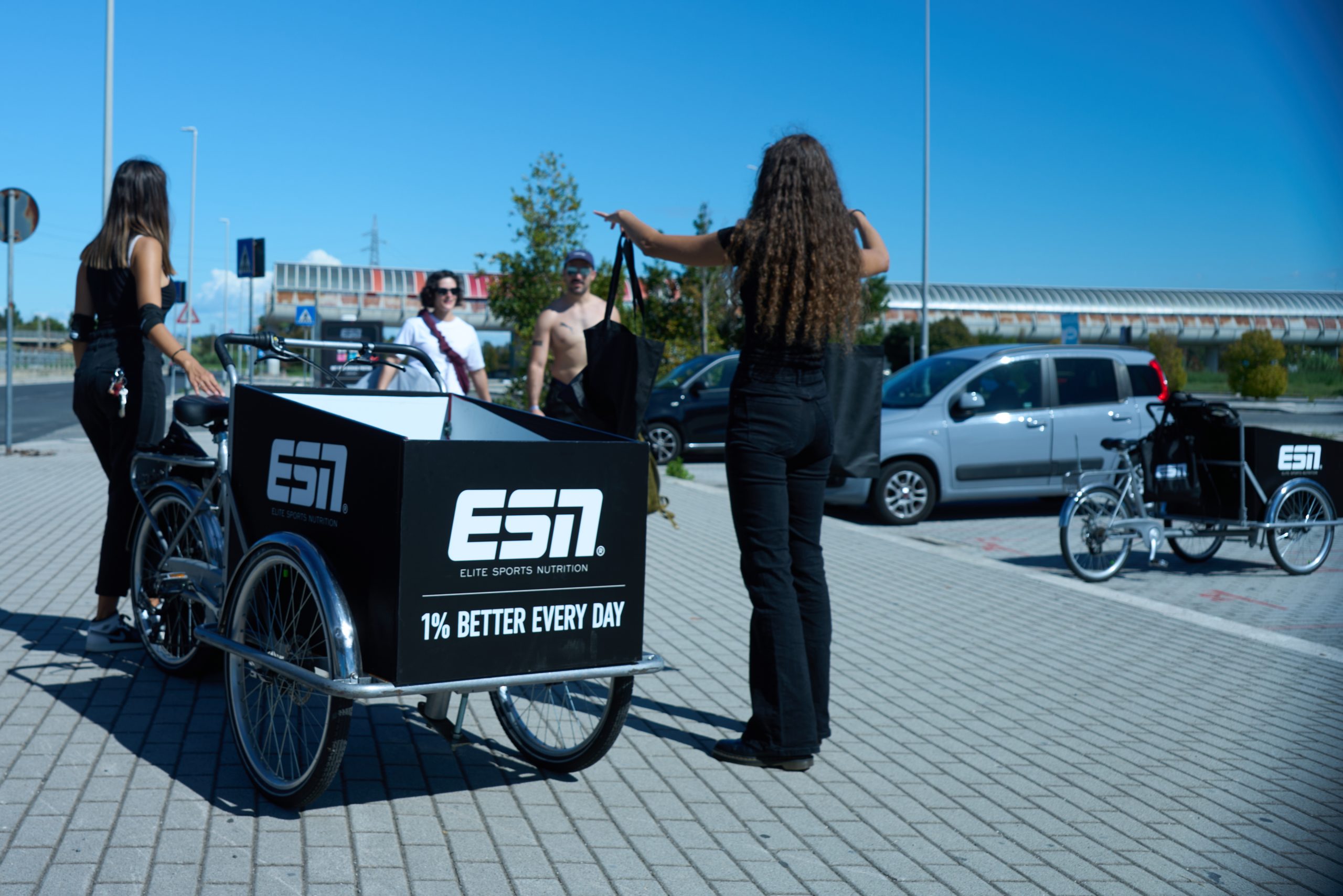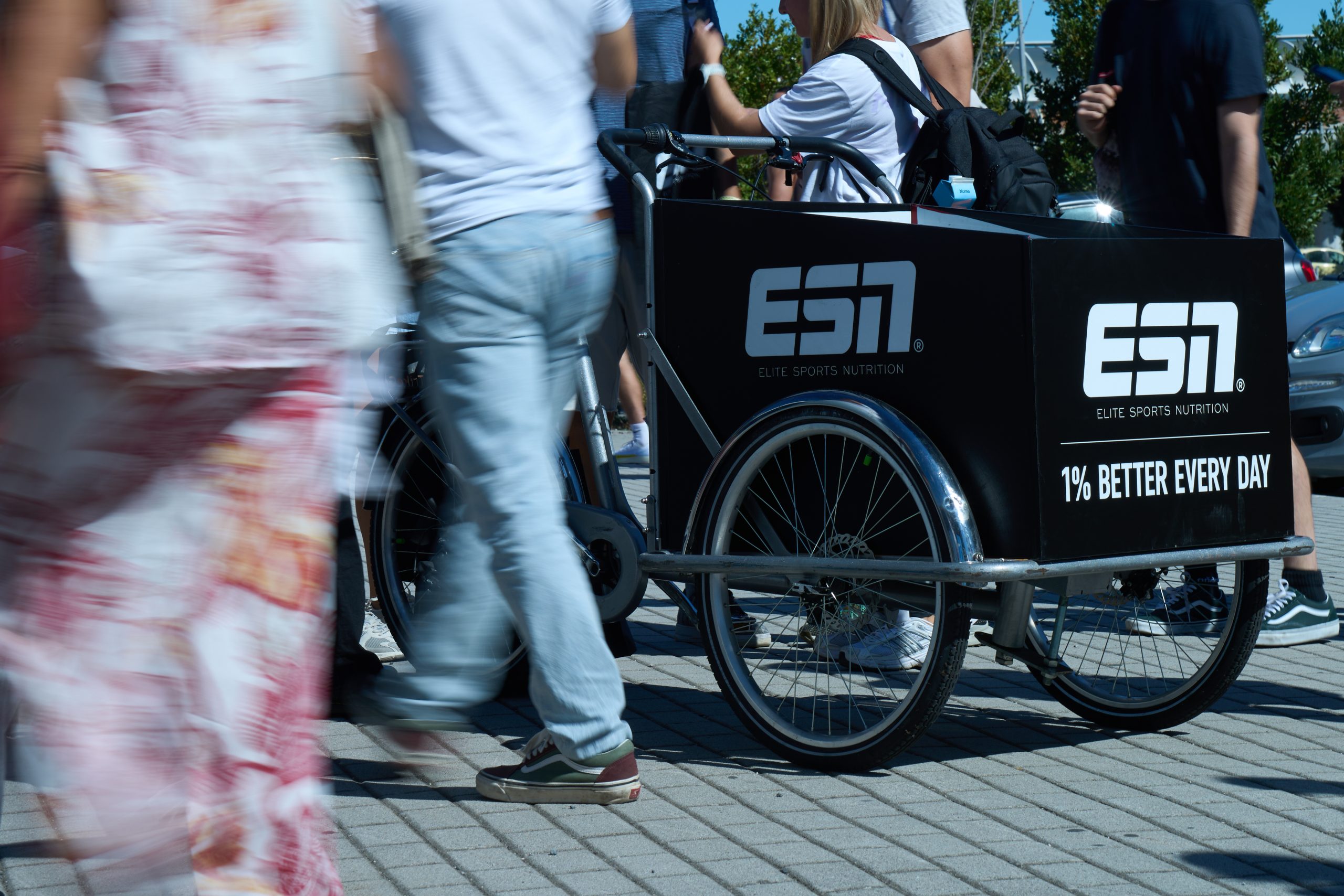 This September, we collaborated with the sports nutrition manufacturer ESN for an activation in Rome. Using custom made cargo bikes and with the help of hostesses, we handed out products and flyers to the attendants of the Hyrox event in the eternal city.
