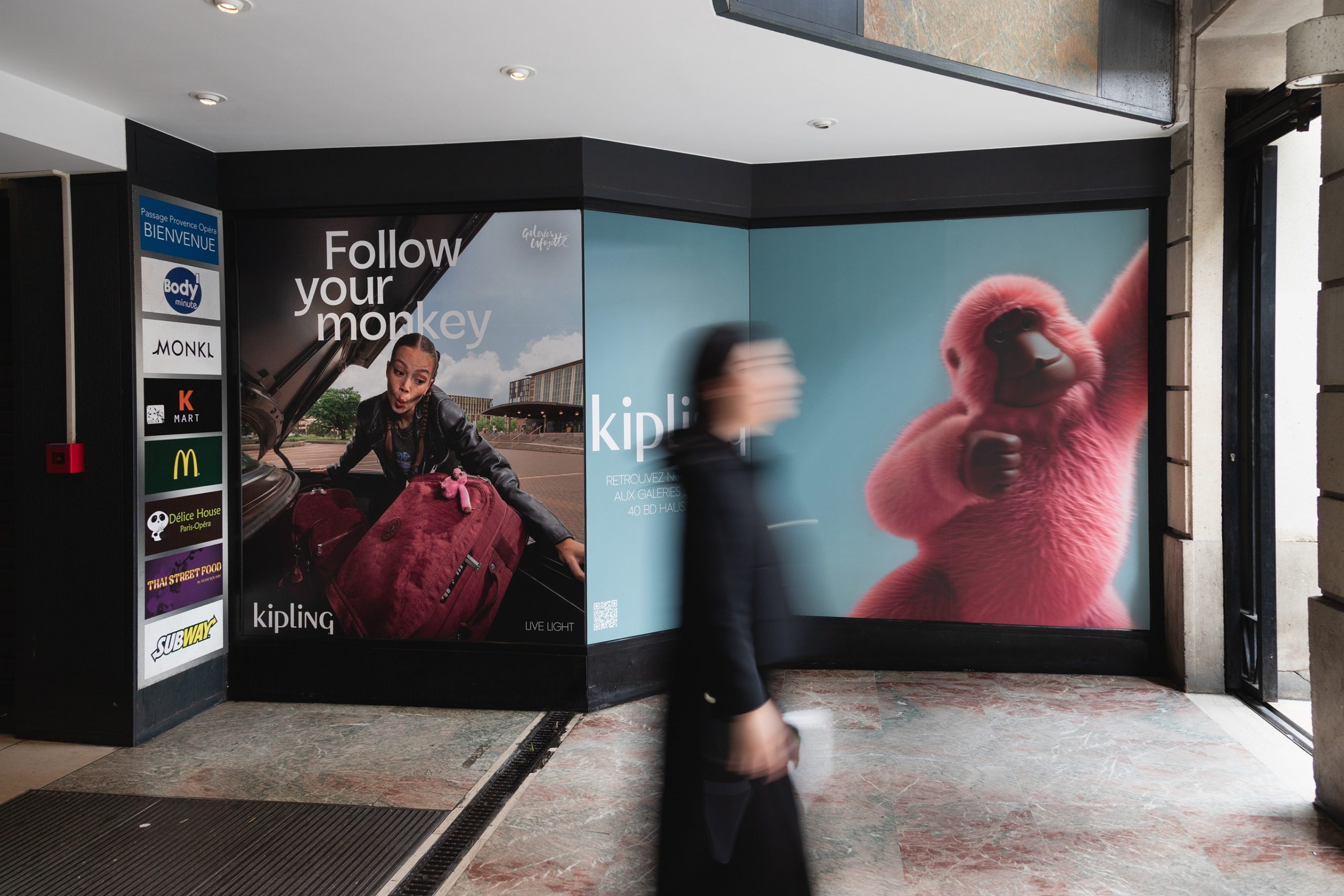 With their signature monkey, a playful touchstone in their designs for years- Kipling dominated the whole city with visual’s celebrating the brand’s spirit.